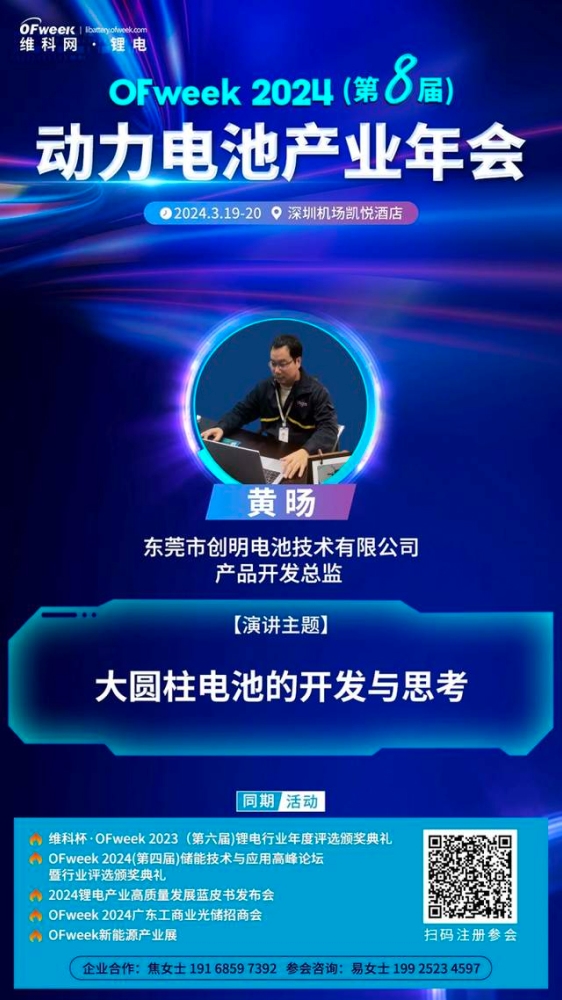 Against the backdrop of challenges such as the slowing growth rate of installed capacity and excess production capacity in the power battery industry, the OFweek 2024 (8th) Power Battery Industry Annual Conference and Industry Annual Awards Ceremony, organized by OFweek and OFweek Lithium Battery, will be held on March 19-20, 2024, at the Hyatt Regency Shenzhen Airport. Dongguan Cham Battery Technology Co., Ltd. will showcase its outstanding technical strength in Shenzhen, sharing the latest dynamics and technological innovations in the power battery industry with industry leaders, experts, scholars, and enterprise representatives. Dr. Huang Yang, Director of Product Development at Cham, will deliver a special speech titled Development and Reflections on Large Cylindrical Batteries.